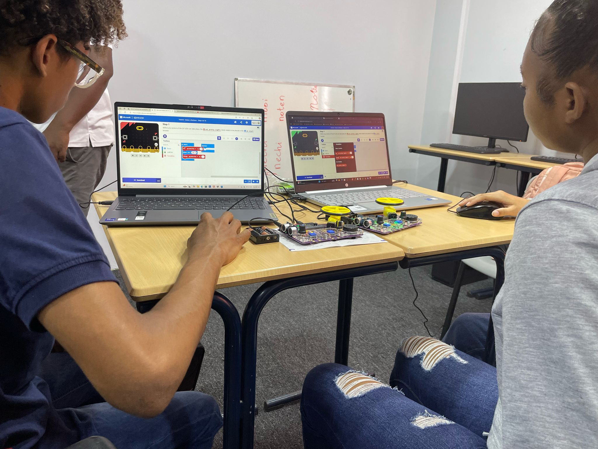 Ondertussen verdiepten de oudere kinderen zich in Lab Bit, waar ze op een interactieve manier ontdekten hoe technologie en programmeren werken. Door zelf te experimenteren, leerden ze logisch nadenken, problemen oplossen en samenwerkenโbelangrijke vaardigheden voor de toekomst.