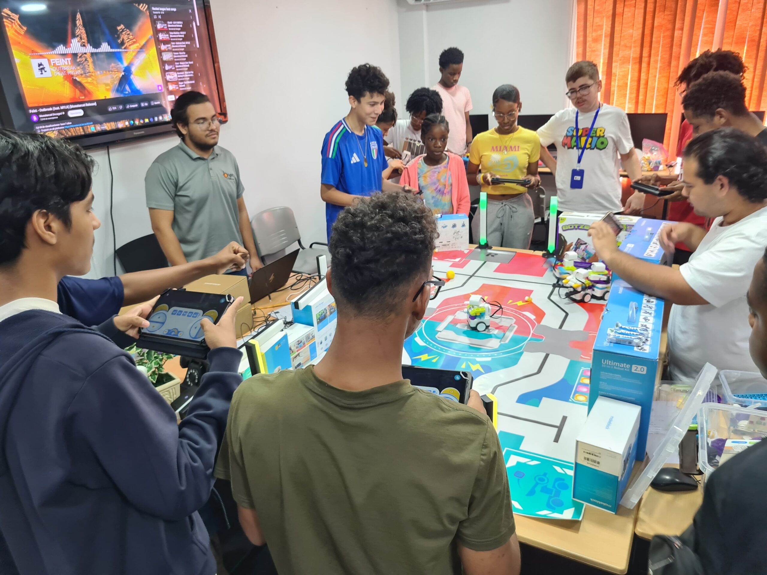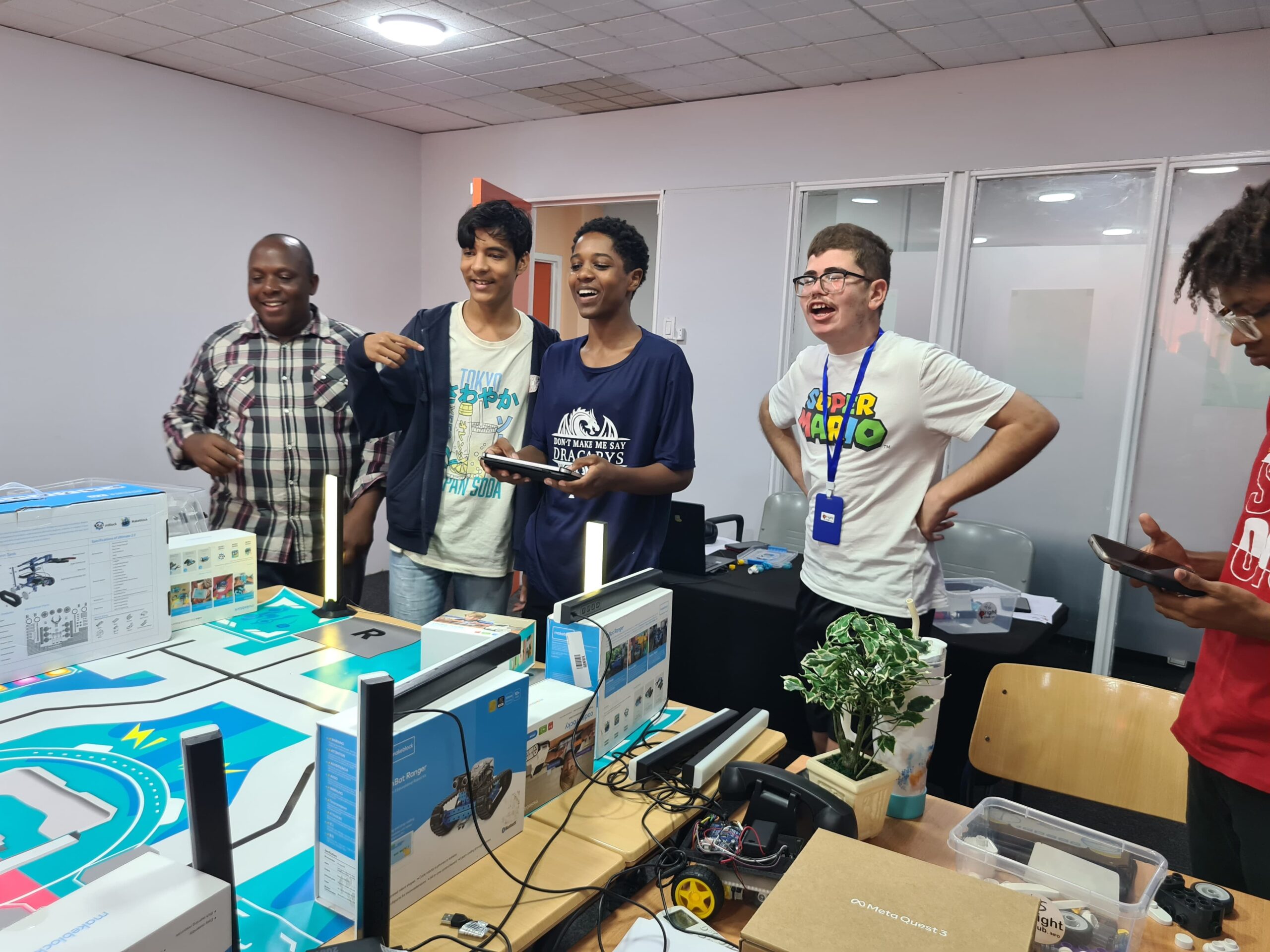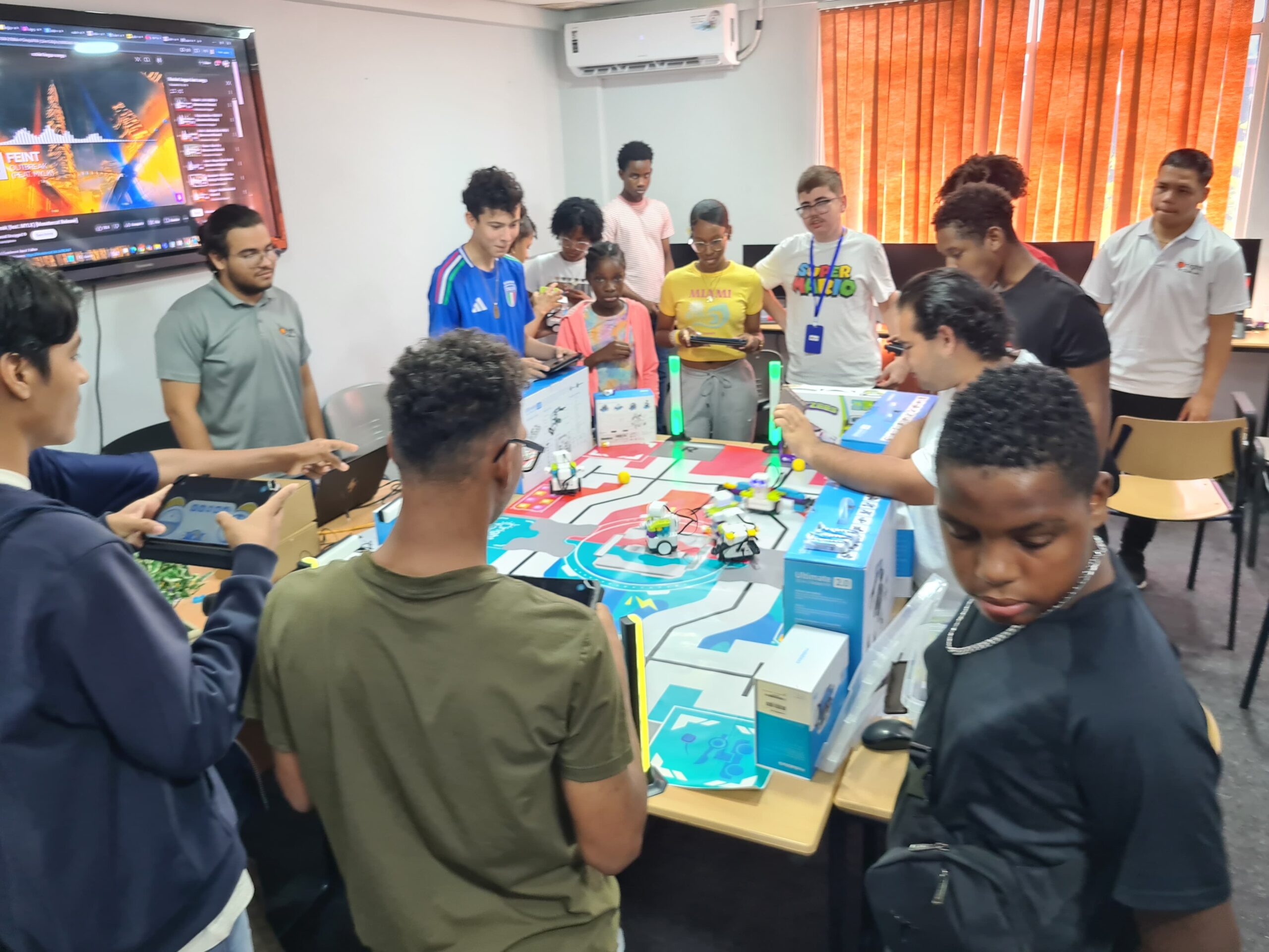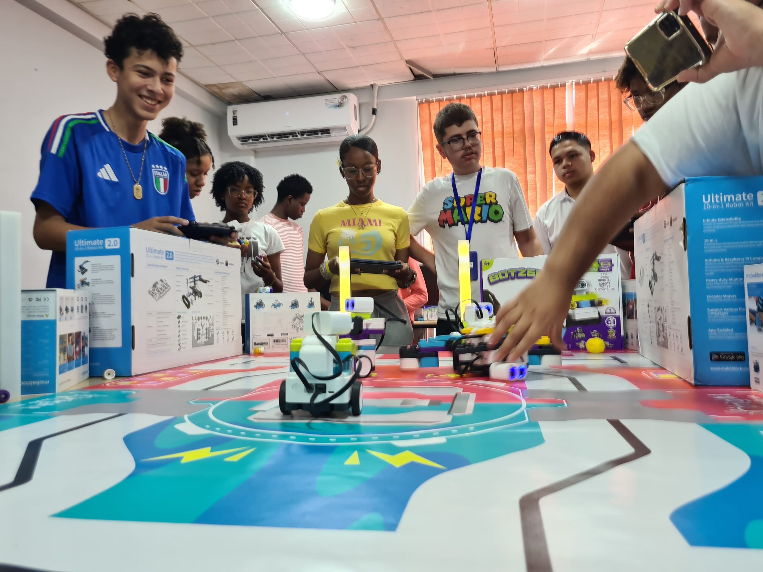 Ondertussen verdiepten de oudere kinderen zich in coding. Na het leren van programmeervaardigheden, namen ze deel aan een quiz om hun kennis te testen. Tot slot hielden ze een spannende voetbalwedstrijd met de Botzees. Een ander groepje demonteerde en monteerde de mBot en werkte ook aan coding-projecten.