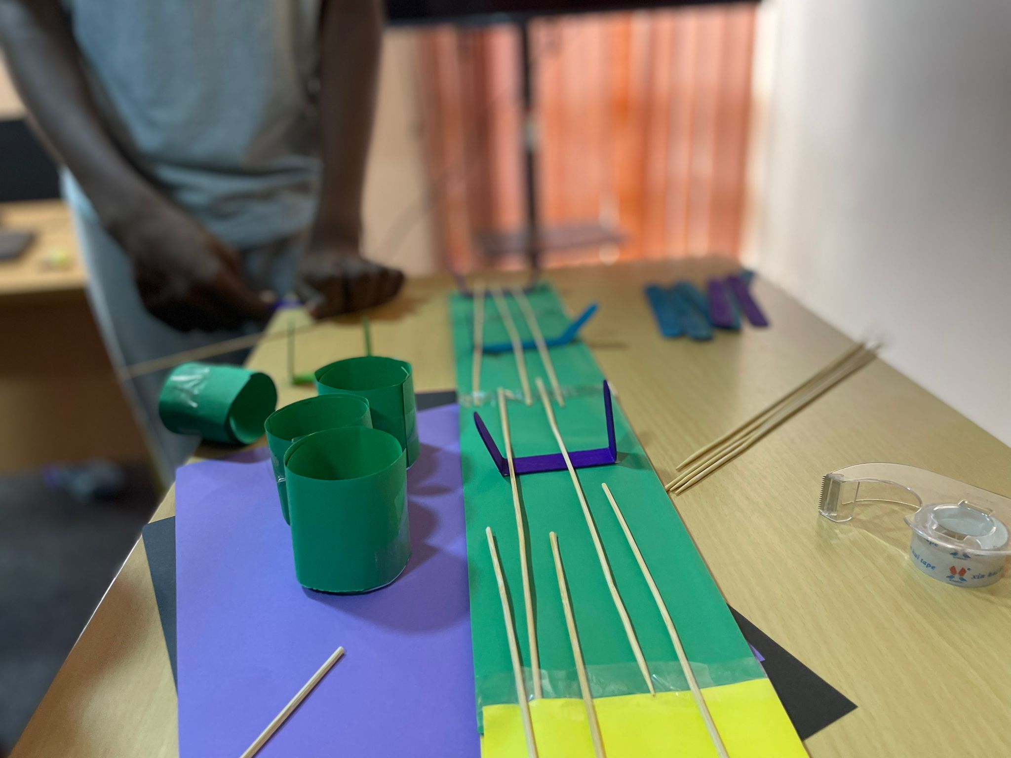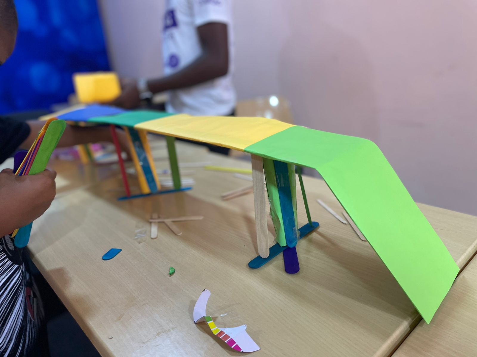 Iedere groep werkte met veel concentratie aan hun brugontwerp. Ze dachten na over sterkte,